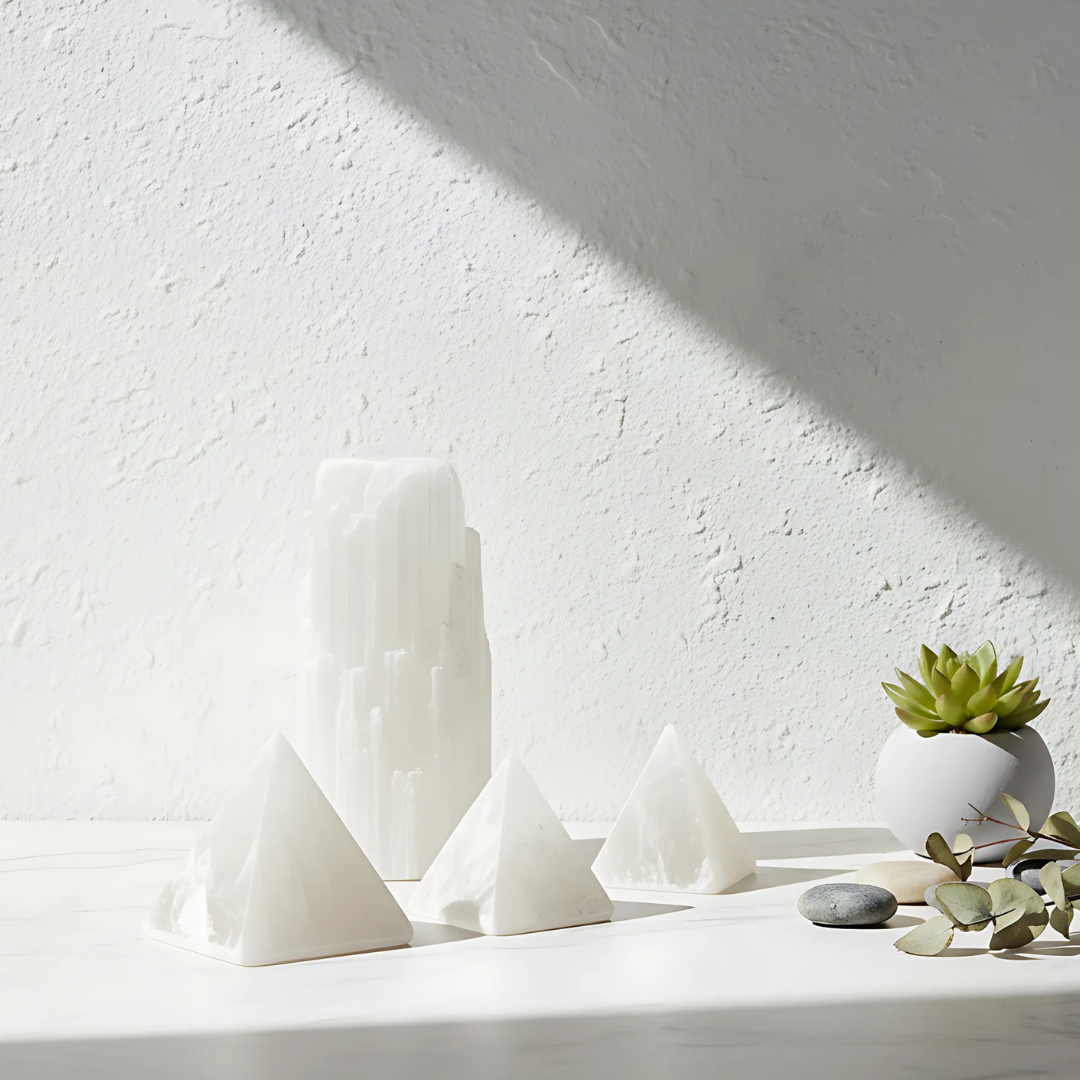 Décoration Sélénite — Pack de Pyramides Énergie